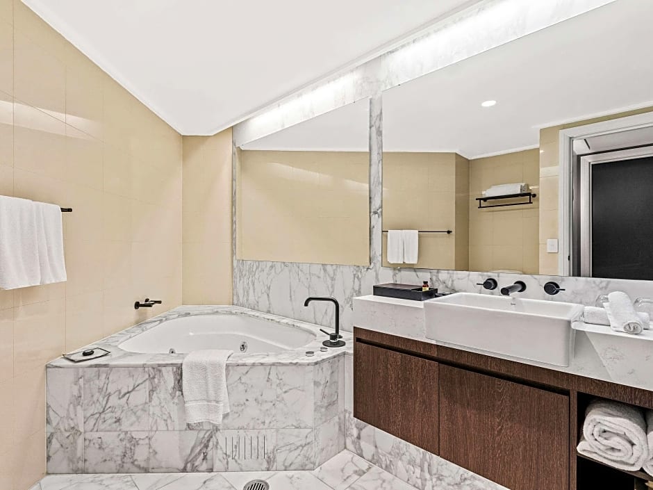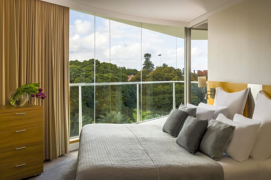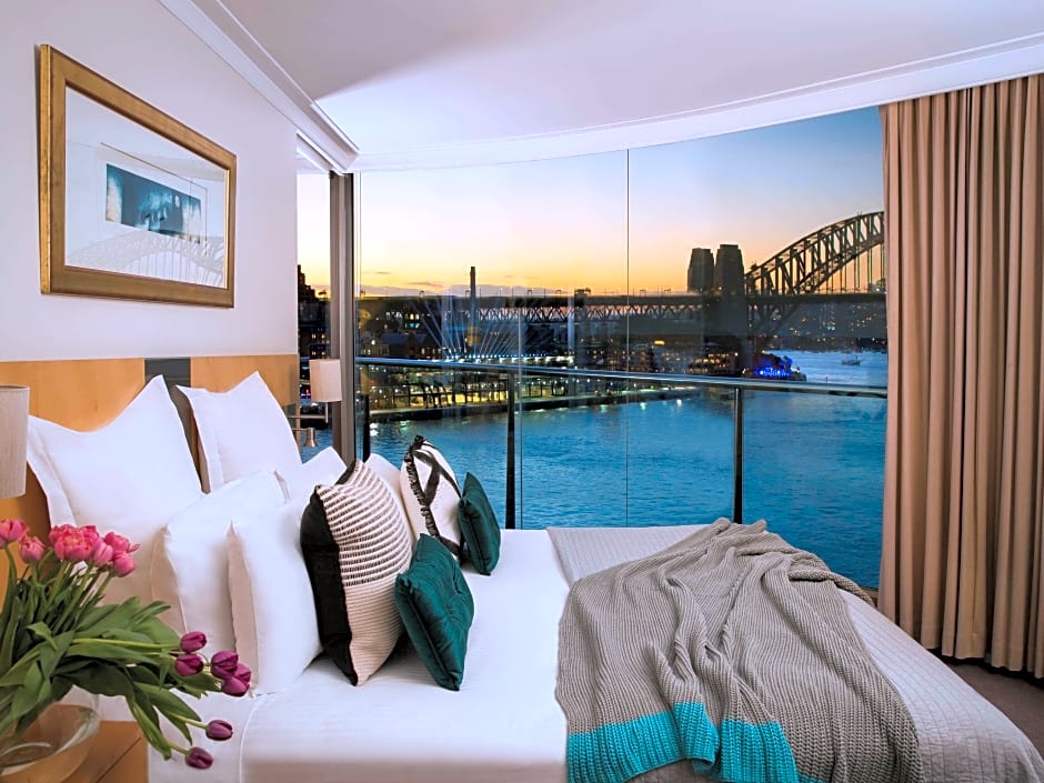 One-bedroom apartment-style suite with views of Circular Quay and Sydney Harbor Bridge. This suite comes with spacious living and dining areas, fully equipped designer kitchen, laundry facilities and private balcony. The bedroom features a king-size bed and a luxurious private bathroom with spa bath and separate shower.